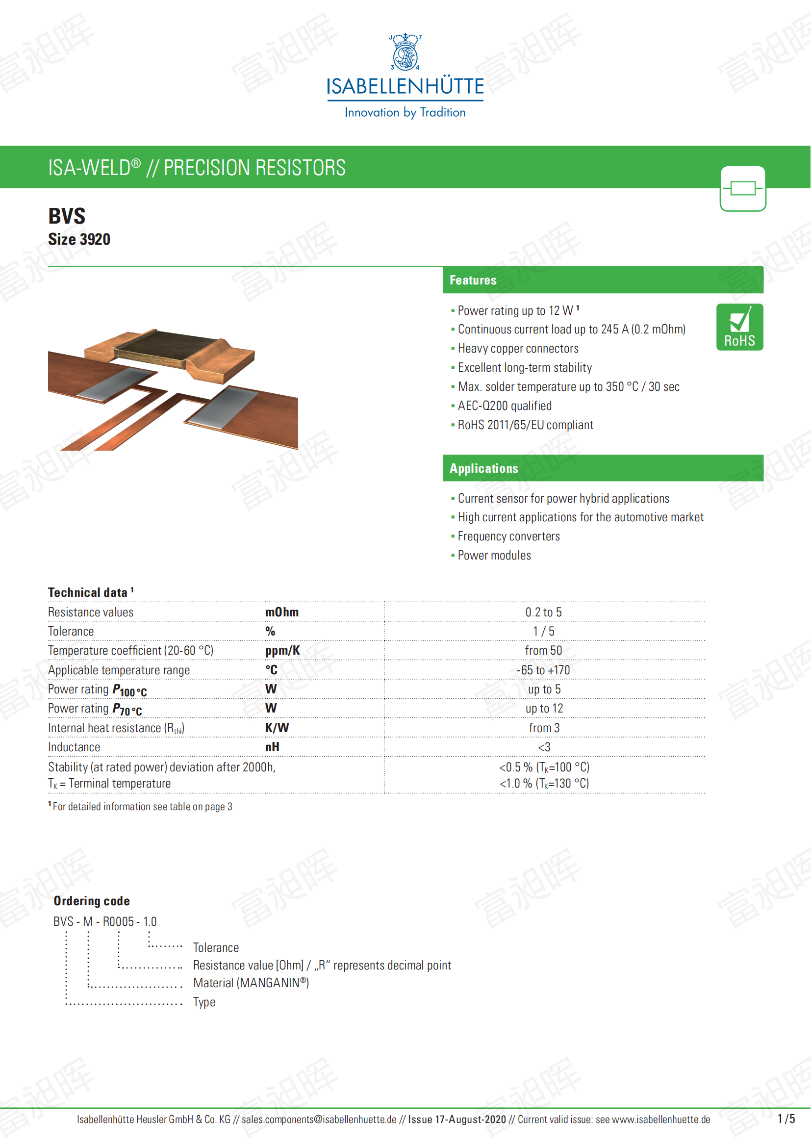 阻值范围: 0.2 mOhm-5 mOhm